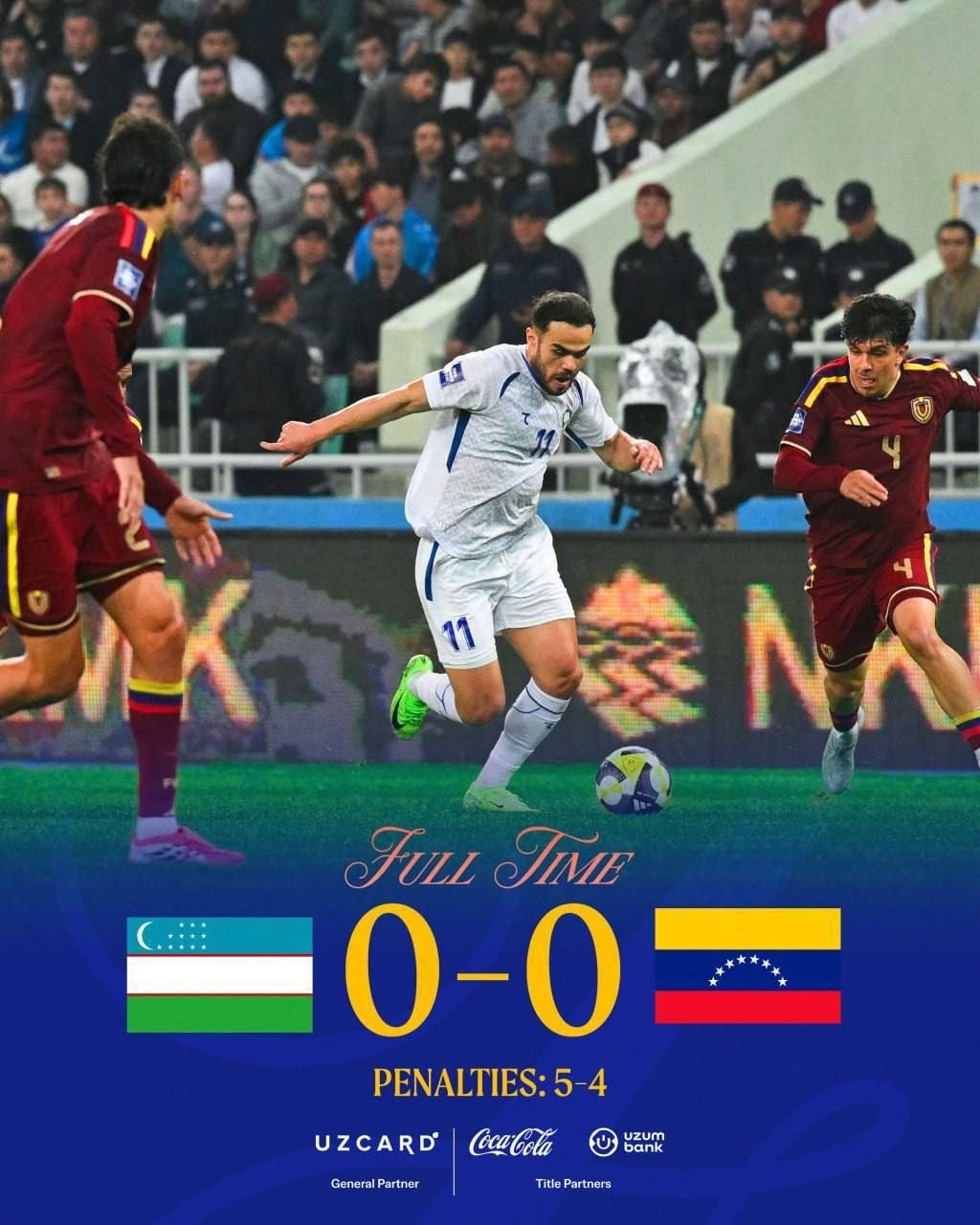 В серии пенальти психологическое преимущество оказалось на стороне узбекских игроков — 5:4. Решающий вклад в завоевание трофея внес страж ворот Абдувохид Нематов, сумевший парировать один из ударов южноамериканцев.