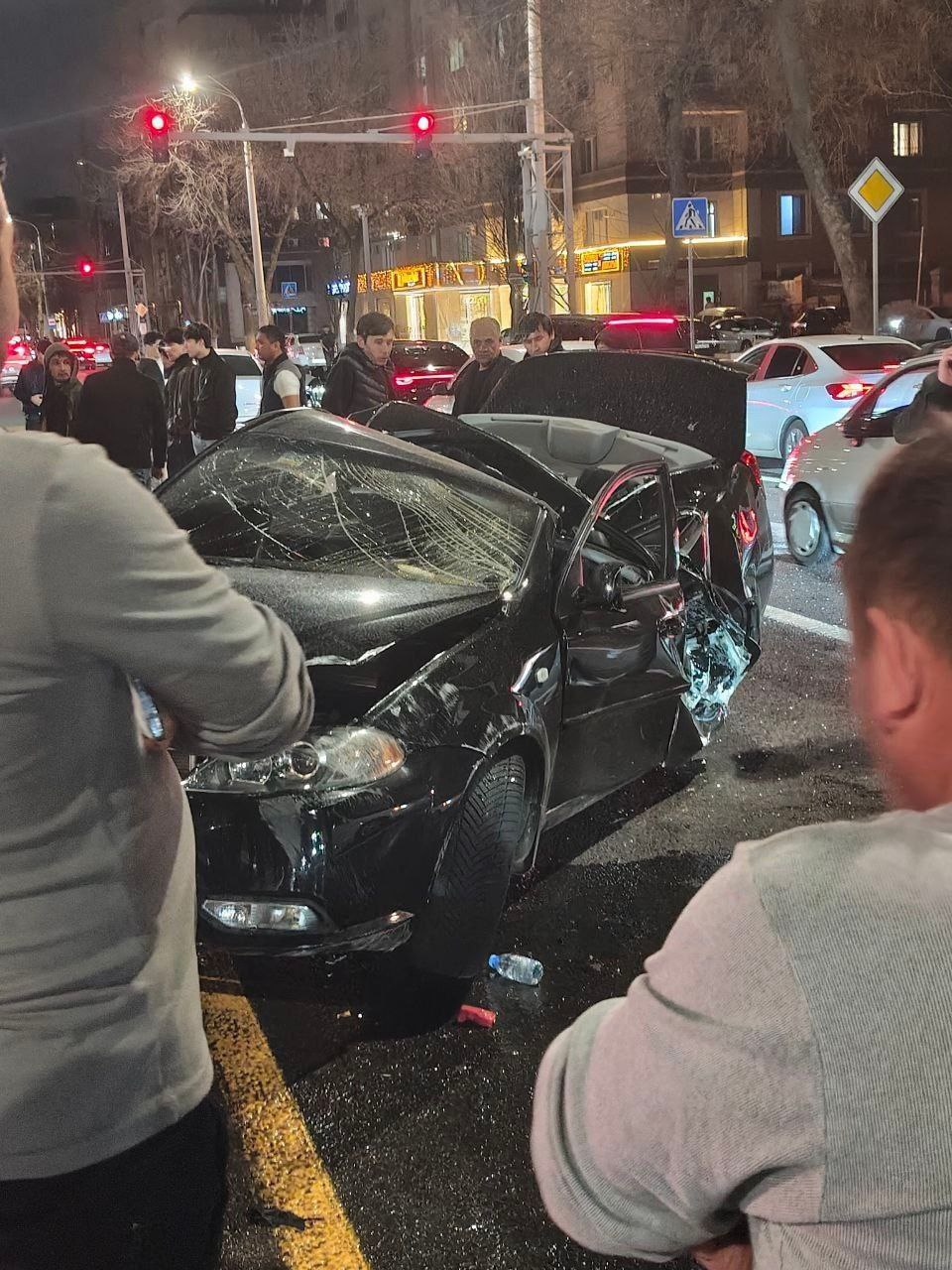По информации городского управления безопасности дорожного движения, 19-летний водитель автомобиля Gentra двигался в попутном направлении с Nexia-3. В районе перекрёстка произошло столкновение, после которого водитель потерял контроль над управлением. Машина пересекла бетонный разделительный барьер, оказалась на полосе встречного движения и столкнулась с автомобилем Cobalt, находившимся на перекрёстке.